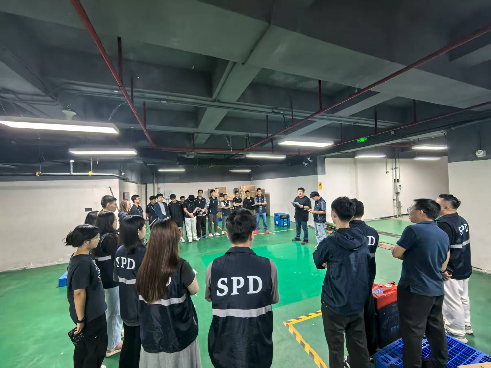 應(yīng)急小組迅速響應(yīng),搶險救援組快速抵達(dá)現(xiàn)場,將被積水威脅的貨物轉(zhuǎn)移至安全區(qū)域,并組織人員堆砌沙包、清理積水,并妥善處置破損物品;警戒疏散組迅速將防洪閘推至預(yù)定位置,對倉庫門口區(qū)域警戒,檢查并準(zhǔn)備好水泵,引導(dǎo)模擬無關(guān)人員有序撤離,維持警戒區(qū)域治安;后勤保障組確認(rèn)水淹區(qū)域電源情況,進(jìn)行斷電或恢復(fù)供電操作,同時向各小組發(fā)放充足的防洪防汛工具及物資,并與醫(yī)院取得聯(lián)系,記錄溝通結(jié)果。最終當(dāng)現(xiàn)場積水清理完畢,貨物安全轉(zhuǎn)移,演練圓滿結(jié)束。